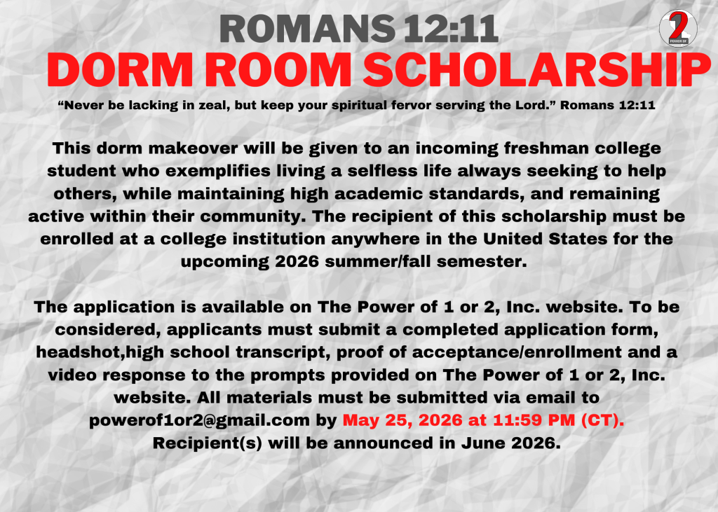 2026 Romans 12:11 Dorm Room Essentials Scholarship